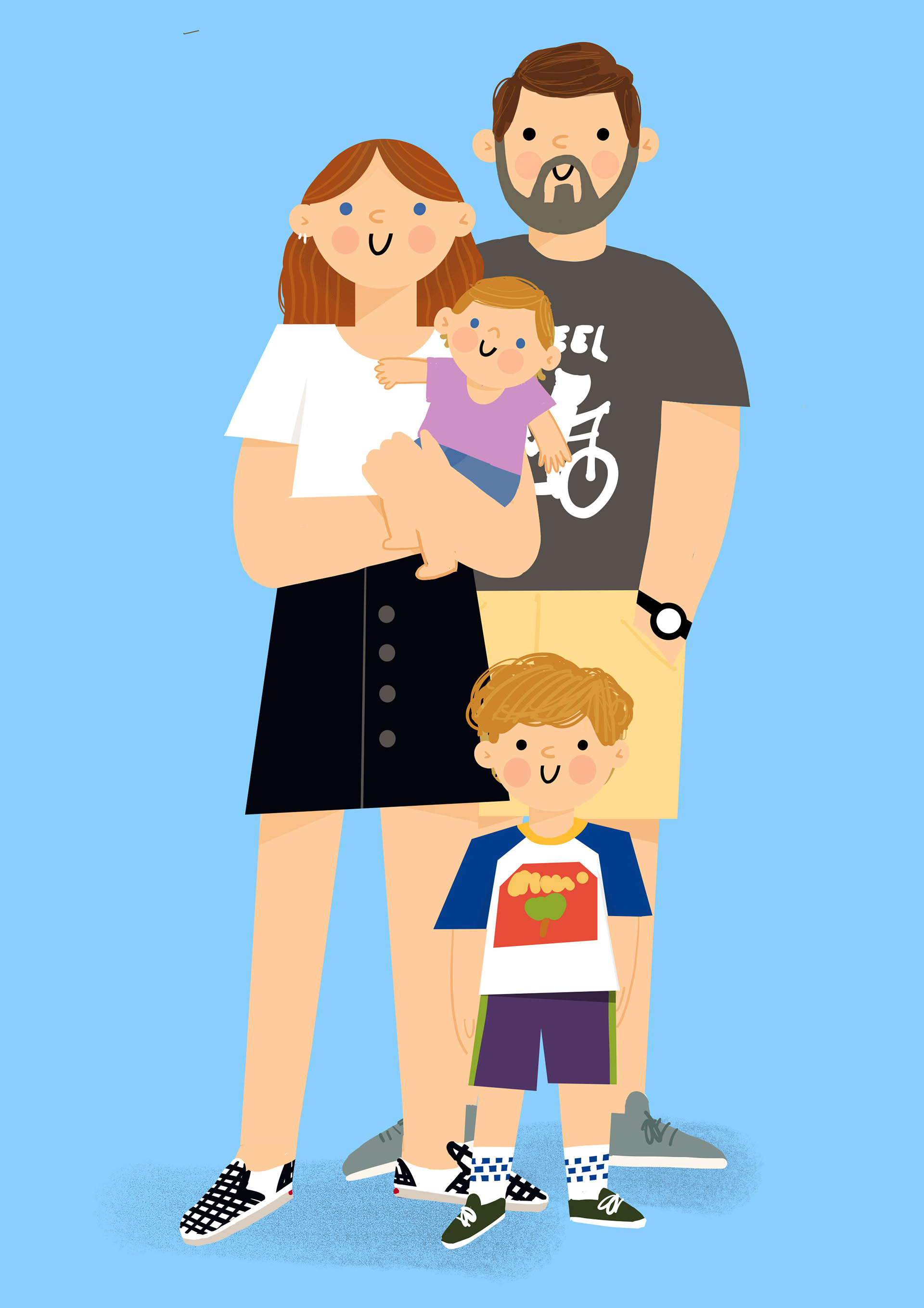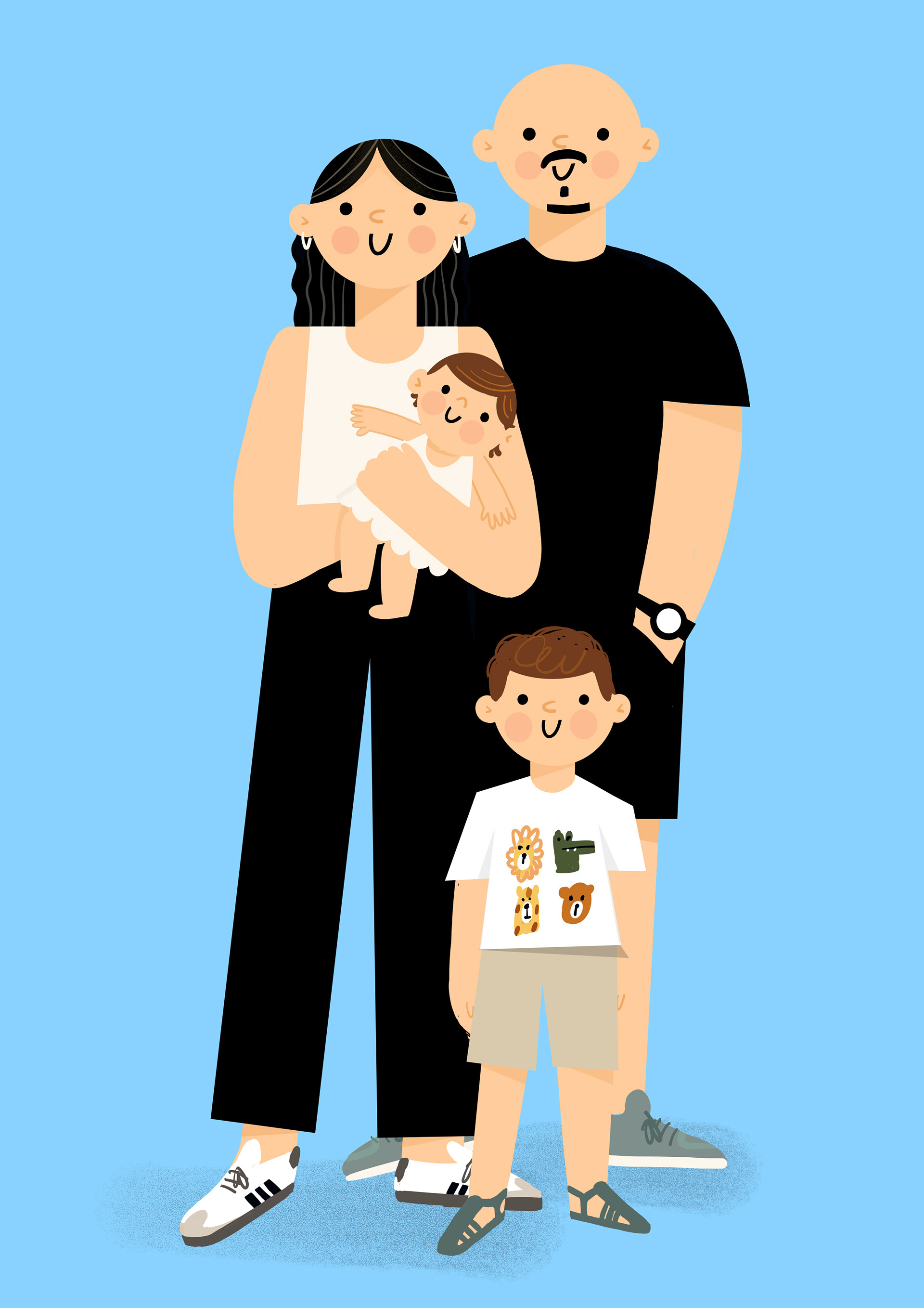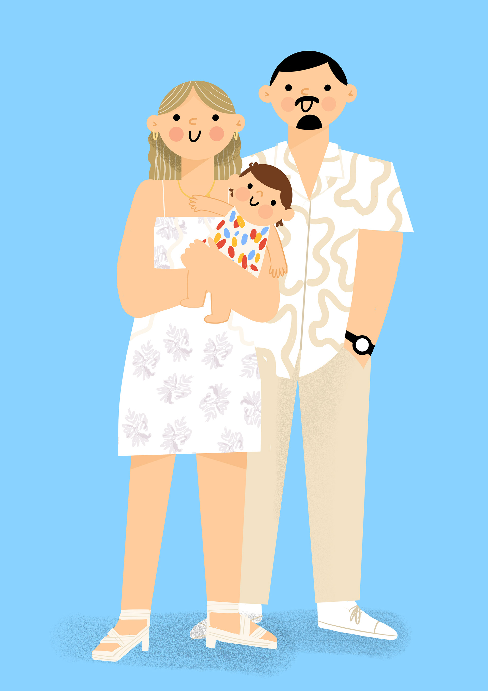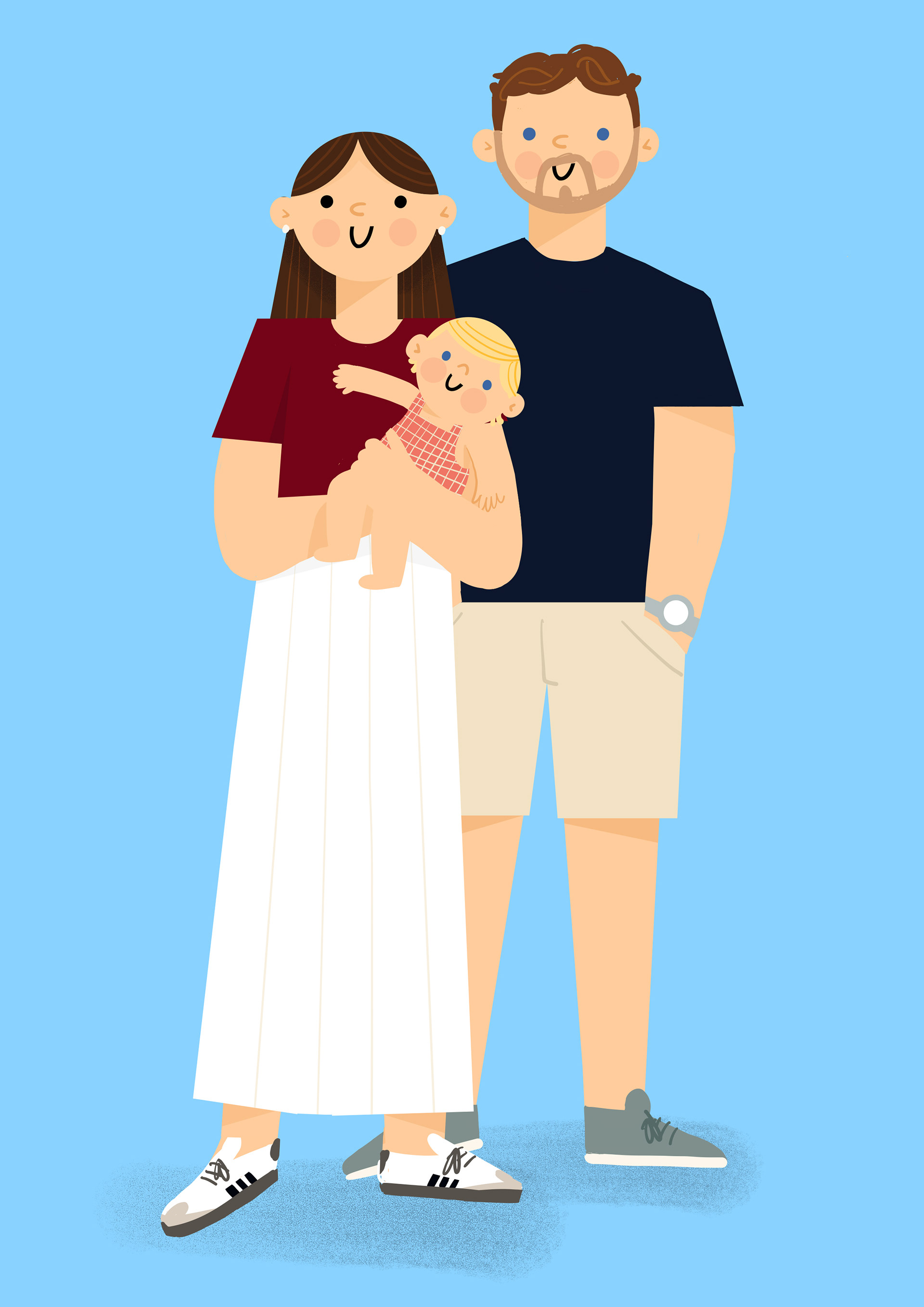 For Nestlé Baby&Me, I illustrated a set of six full-body family portraits — three Portuguese families and three Spanish families.